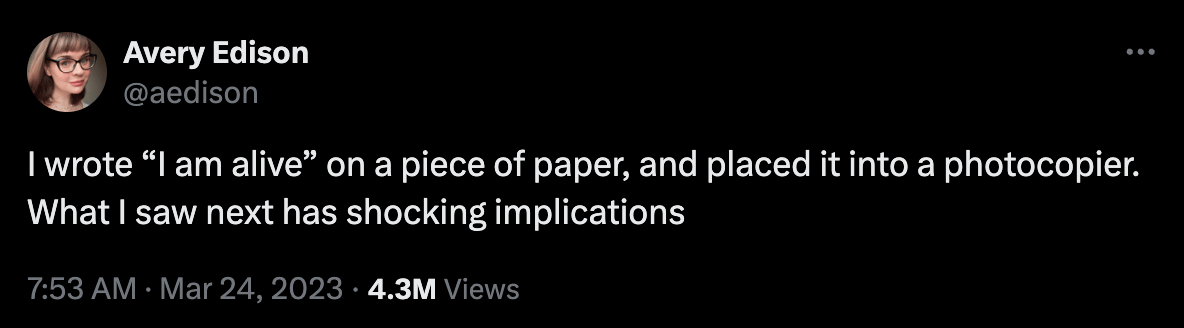 The reason I’m harping on this is because the basic thesis of Lewis-Kraus’s story is that “[w]e don’t know if it makes sense to call [these programs] intelligent, or if it will ever make sense to call them conscious.” I think we do know! Nevertheless, we’re off in search of the ghost in the machine anyway and soon we’re introduced to “Amanda Askell, who has a Ph.D. in philosophy.” Askell works at Anthropic, and is largely responsible for maintaining the description of a helpful robot I mentioned above, which the company calls “Claude’s Constitution.” It’s incredibly long and boring, and gives off the stink of having been itself largely A.I. generated. Lewis-Kraus writes: