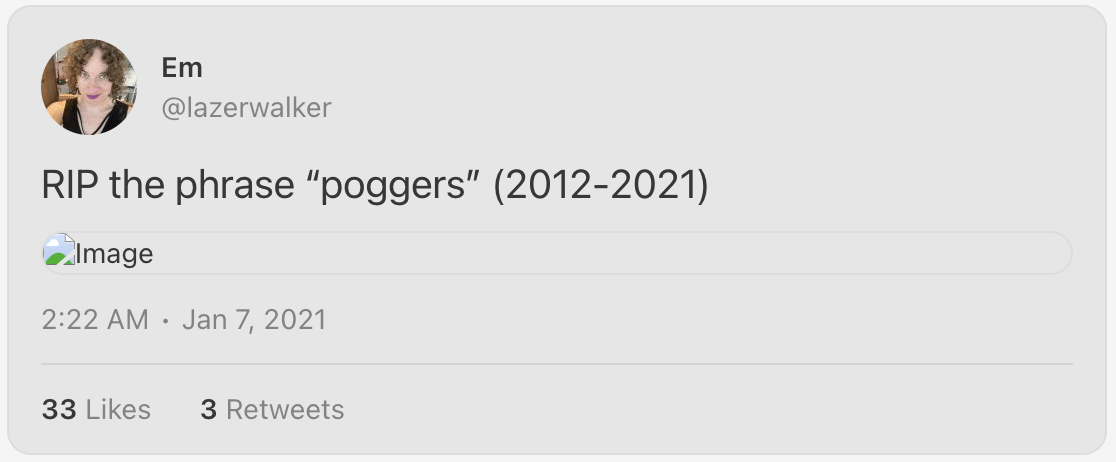 This tweet has been deleted so I don’t know what this was a picture of, but the poggers emote guy was pro Jan 6th so it was probably that.