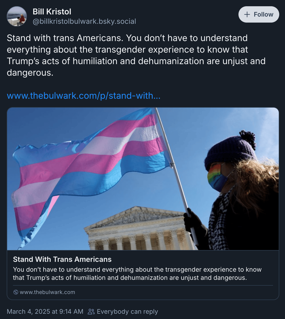 The outsize and outstandingly cruel obsession with transgender Americans — a small, vulnerable minority already targeted with disproportionate violence — is blatant scapegoating, and a serious overreach on the part of the federal government. I can’t say it’s exactly consequential, since so few lives are materially affected (which is kind of my point) but it is a shameful mark on our national conscience.