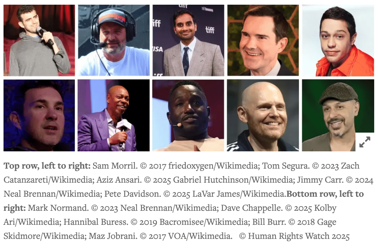 Look at all these guys! Look at Pete Davidson up there in the corner, with his little “ain’t I a stinker!” face. Coming soon: every one of these dudes claiming that the role of comedy is to Speak Truth To Power.