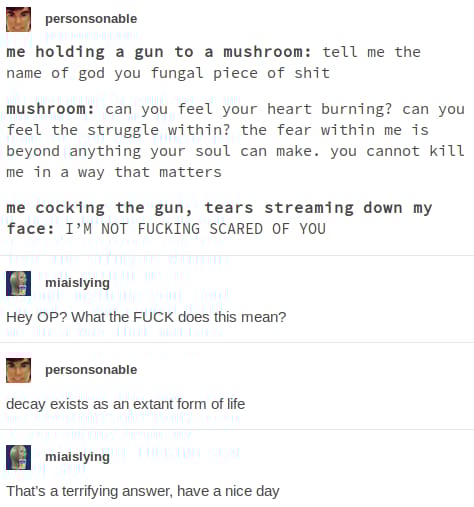 Over the course of the ARG, several things were made clear: that within the game’s fiction, Guy Fieri and Dr. Phil served in the Gulf War together, leading to a crackship that even the Staff supported, creating a special Valentine’s Day banner dedicated to it, to the confusion of many; that the game’s main cipher was based on the Voynich Manuscript; and that the game masters kept asking players to read Ulysses and Borges. The game results in a quest through the land of Arcadia, to guide two surrealist artists to Flavortown and return them to our universe. The original ARG happened over the span of two months, and after that, players thought it had ended, with the occasional recap popping up.