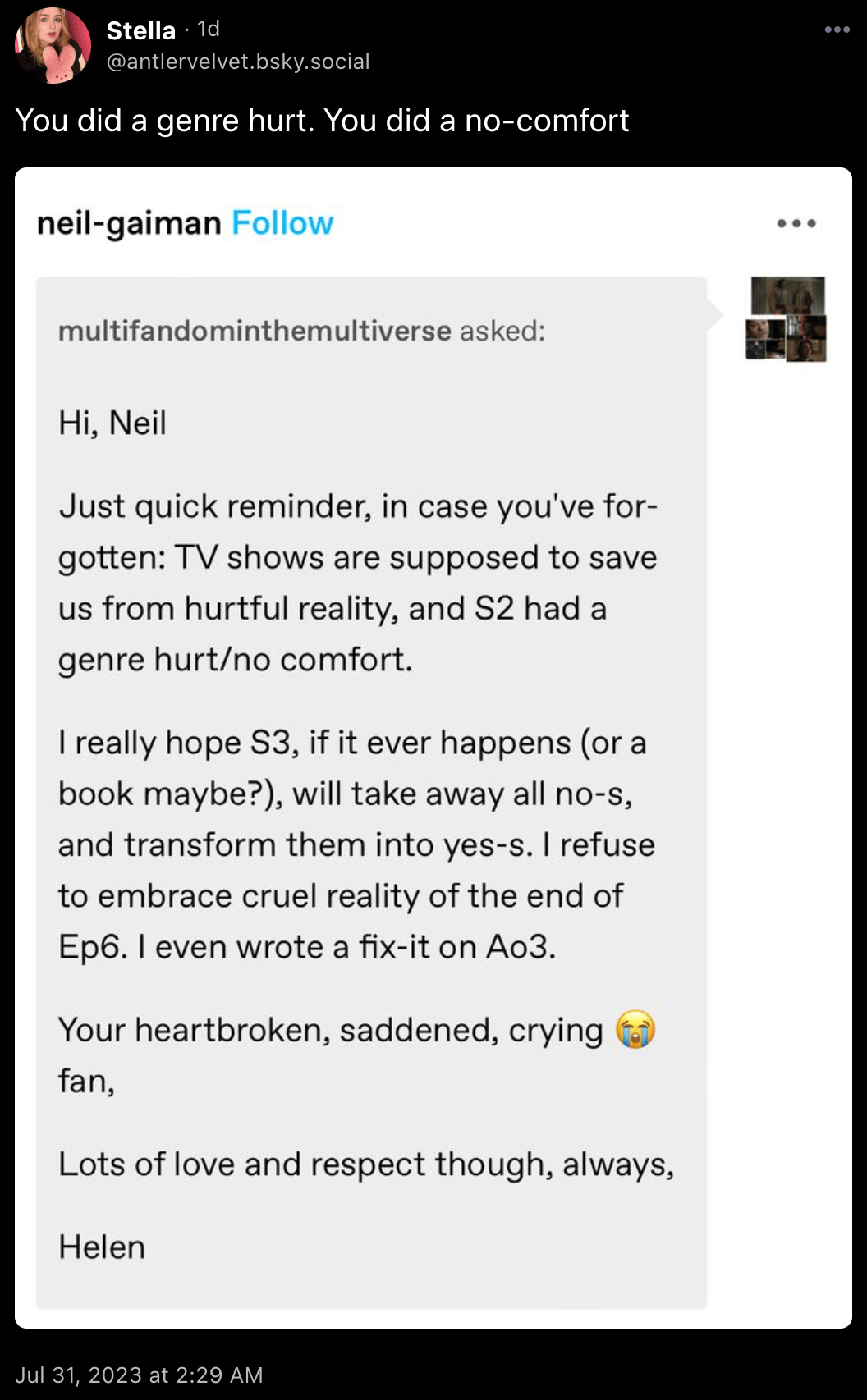 Thanks to Music Intern Sam, and thanks to you for indulging me in a real “last week of the season” newsletter here. Tomorrow: I probably won’t do better.