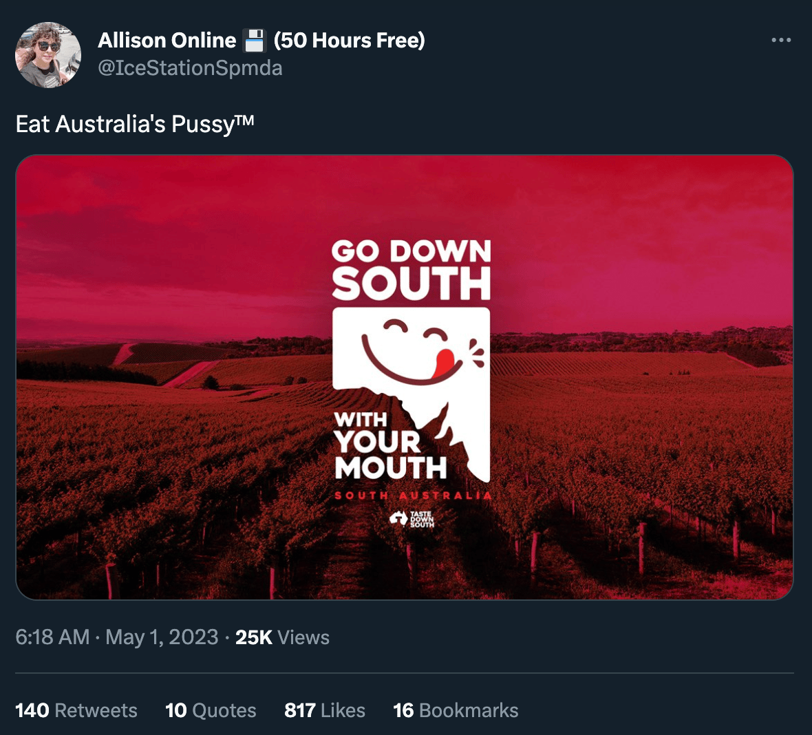 It feels like Spring finally hit this weekend, horny jail is empty and all the inmates are here. Puglia, Italy is in an uproar about its thicc mermaid, Sheera Frenkel got “skeets” into the New York Times (also the hellthread is already in Know Your Meme), and South Australia has a new tourism slogan: