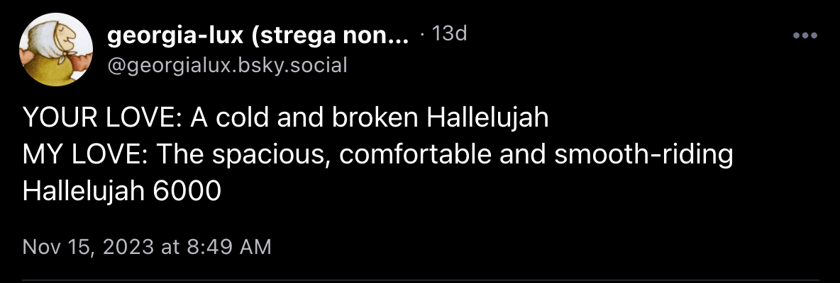 Looks like it’s time for me to lose some more paid subscribers. For the record: Tabs will not remain on Substack through 2024. This is our last few months here, so do what you need to do about your own subscription but I agree with you about not wanting to pay Substack anymore. I have plans afoot for next year, more about which: very soon. Helena Fitzgerald also has plans afoot, posting that tomorrow will be the last Griefbacon to come from Substack.