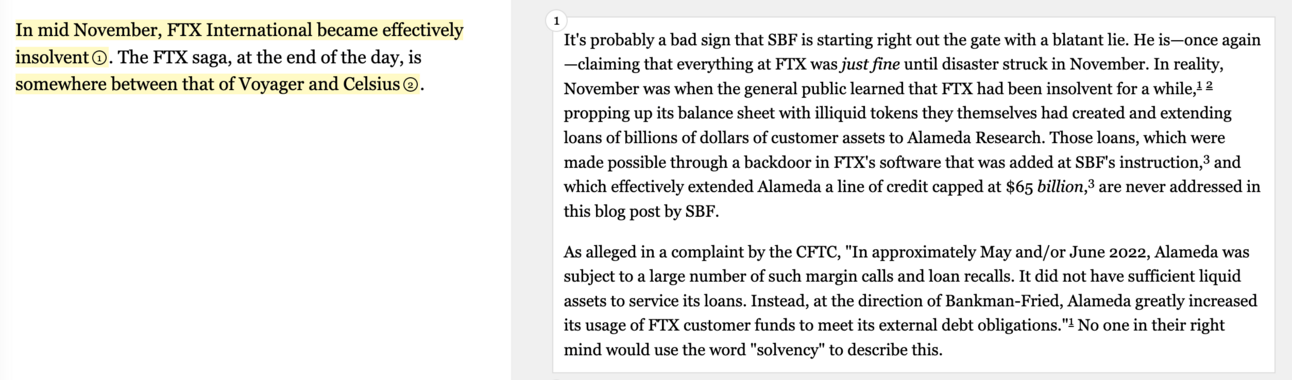 Every night, when I wake at 3am drenched in cold sweat, the thing that woke me is the fear that one day I’ll write something that Molly White takes a very personal and detailed interest in reading closely, the way she previously took an interest in Kevin Roose’s work and has now taken an interest in what Sam Bankman-Fried had to say for himself in his recent ill-advised newslettering début: