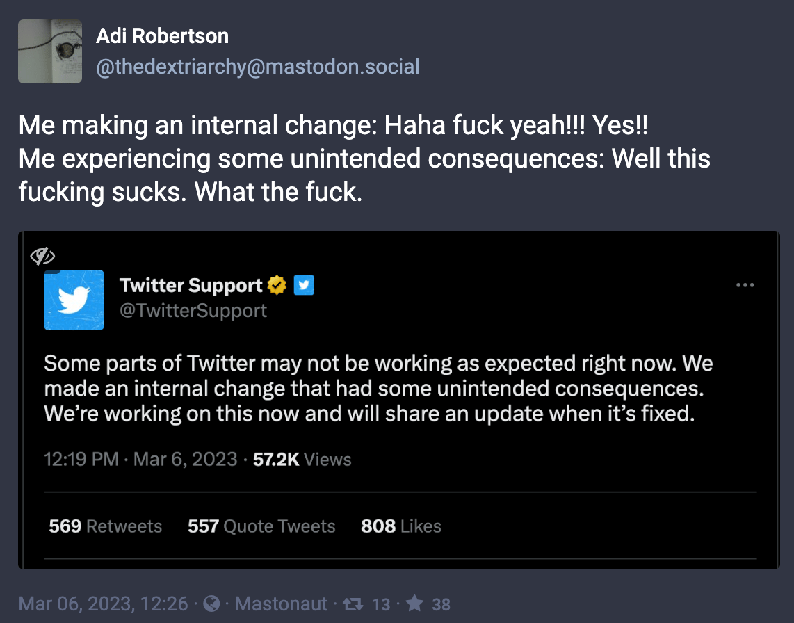 Just imagine the musk. Naturally Platformer has the scoop about what happened today outside of Elon’s impregnable posting cube.