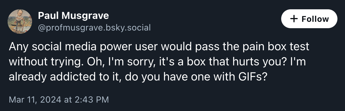 Shannon Palus extends the Being Normal About Sydney Sweeney’s Boobs Discourse yet another day, for Slate. The best airport in North America is apparently LaGuardia!? Hell Gate’s Esther Wang discovering that men don’t pull our pants all the way down to pee standing up is some classic blogging. If Anil Dash is offering us suggestions on how to make better documents we should probably listen. Human dog bed on sale. Or, if price is no object, have you considered a $10,000 toilet? I’m told it’s very skibidi.