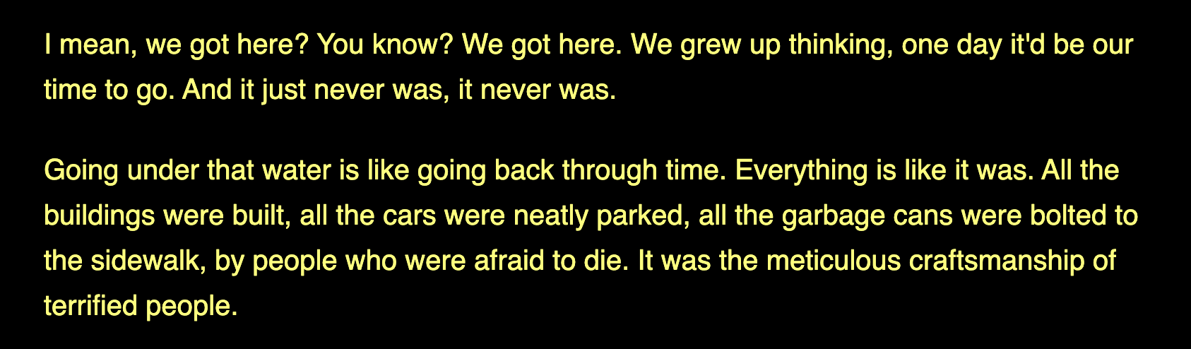 I’ve known about 17776 since 2017, but I have to admit I didn’t actually read it until yesterday. It was widely praised, and won a National Magazine Award for Digital Innovation in 2018. It’s one of those rare works that simultaneously creates and perfects a new form of storytelling, like Mary Shelley did for science fiction with Frankenstein, or Laurence Sterne did for the postmodern novel with Tristram Shandy. We might have a very long wait until someone else does something almost as good with the internet. I knew it was the kind of thing I’d like, but I just hadn’t gotten around to picking it up yet.