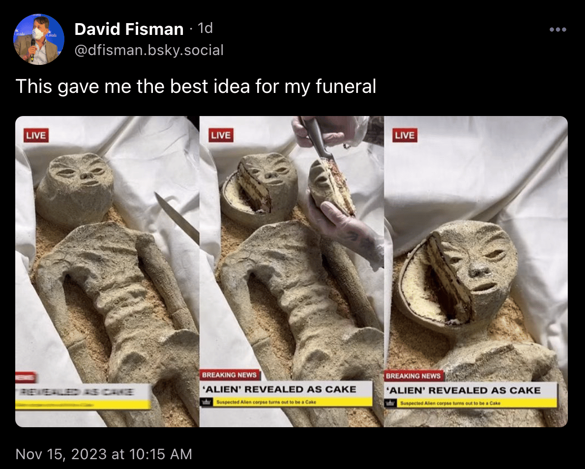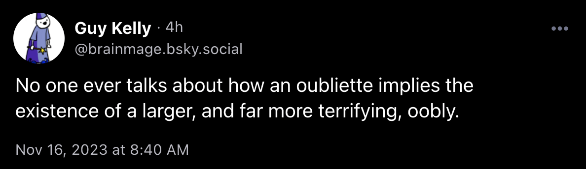 André 3000 strongly implied to Zach Baron that he has an unreleased rap about colonoscopy but will release a flute album tomorrow instead. I did read the track list for the album and I feel I’ve already had a valid artistic experience. Say what you will about Joe Biden, but he got the job done vis-a-vis our pandas. Hat owner Bryan “Digital” Goldberg reviewed Ridley Scott’s “Napoleon,” and I looked at all the words in this review twice but I still don’t know what he thought about it, it seems to be coated with an attention-resistant layer of cliché. Goldberg also sold “the Gawker trademarks and domain name but not its article archives” to some music brand from Singapore. Fans eagerly await its first good post. RFK Jr. posted feet. Osama bin Laden went viral on TikTok. Is Willem Dafoe’s son disappointed that dad won’t Willem Dafarmhouse?