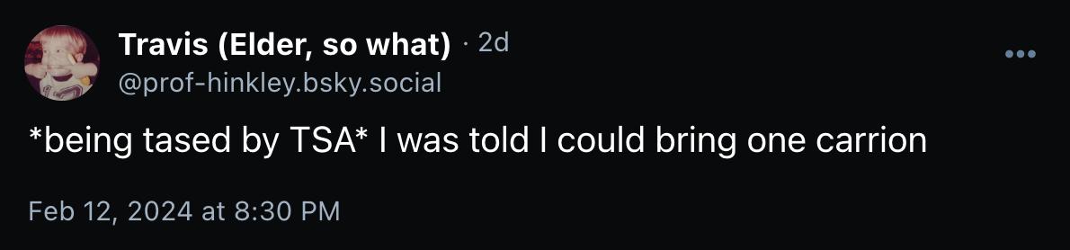 Today is also both Gentleman’s Friday and the last day of Tabs Season Nine. What should I do over the hiatus? Maybe I’ll go on a cruise? Or maybe not. Perhaps a flight somewhere? Although Ian Bogost is right, the whole luggage situation is such a pain. Uh, sorry, I mean: the whole luggage situation is such a pain. Not to mention the maggots.