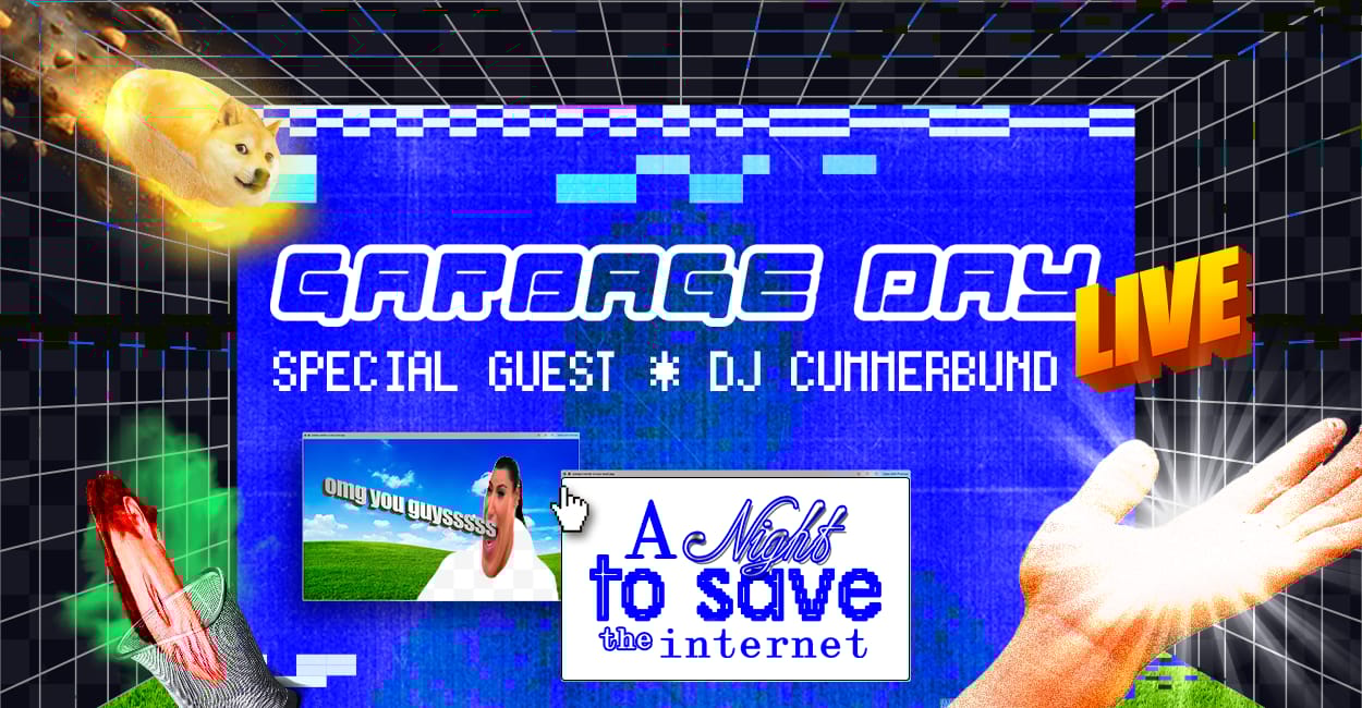 Hi there, my name is Ryan Broderick and I'm hijacking Tabs today to tell you about the upcoming live show for my newsletter Garbage Day. It's on October 18th, at Elsewhere in Brooklyn. It's a night of music and comedy (and angry diatribes) all focused around the very simple of goal of trying to make the internet suck less. It's also packed with guests including reporter Katie Notopoulos, comedian Ena Da, YouTube essayists Patrick Willems and Emma Logsdon, and DJ Cummerbund.