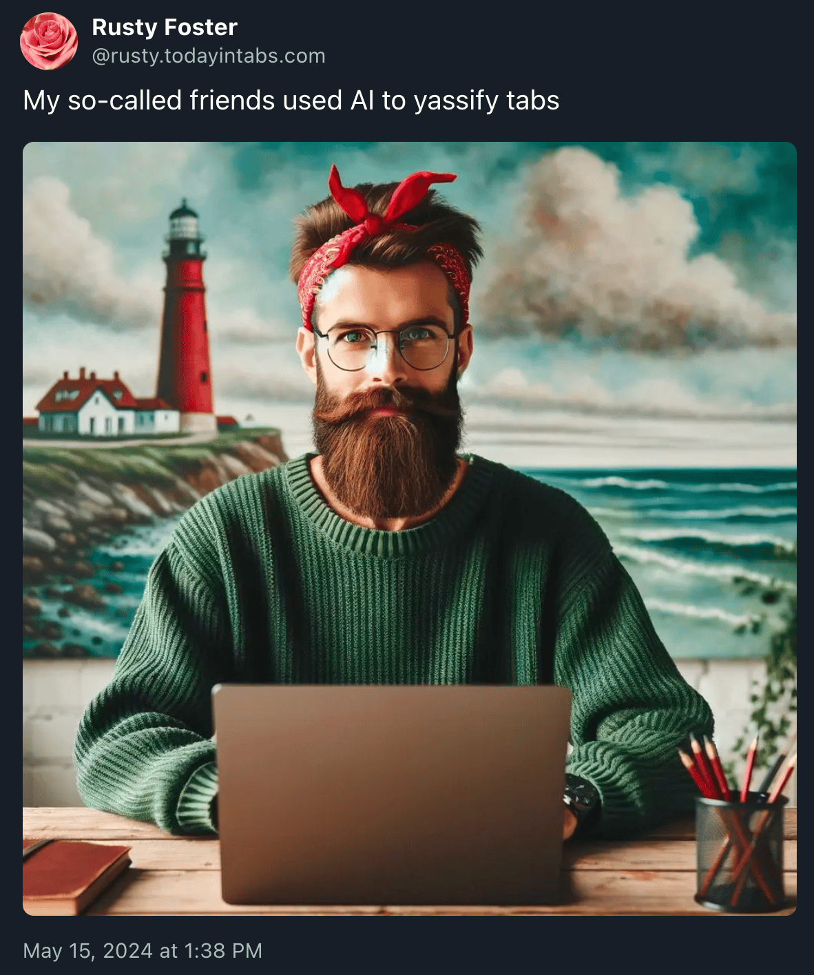 What’s New? Lightning Round. Let’s go! Deez Links goes paid. The Messenger’s Finkelstein still thinks he has a future in media, lol. Defector’s Burneko roasted Kevin Roose to a fine ash. Business Insider thinks Google has a killer A.I. app in “telling you what your phone camera is looking at.” I already know what a computer screen looks like but I’m just built different I guess. Maura Judkis petted more than one hundred incredibly Good Boys at Westminster. Want to buy the contents of an entire Red Lobster? Of course you do.